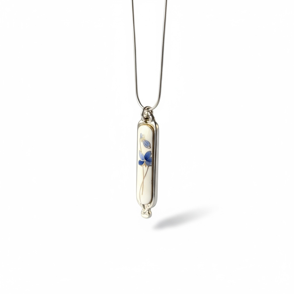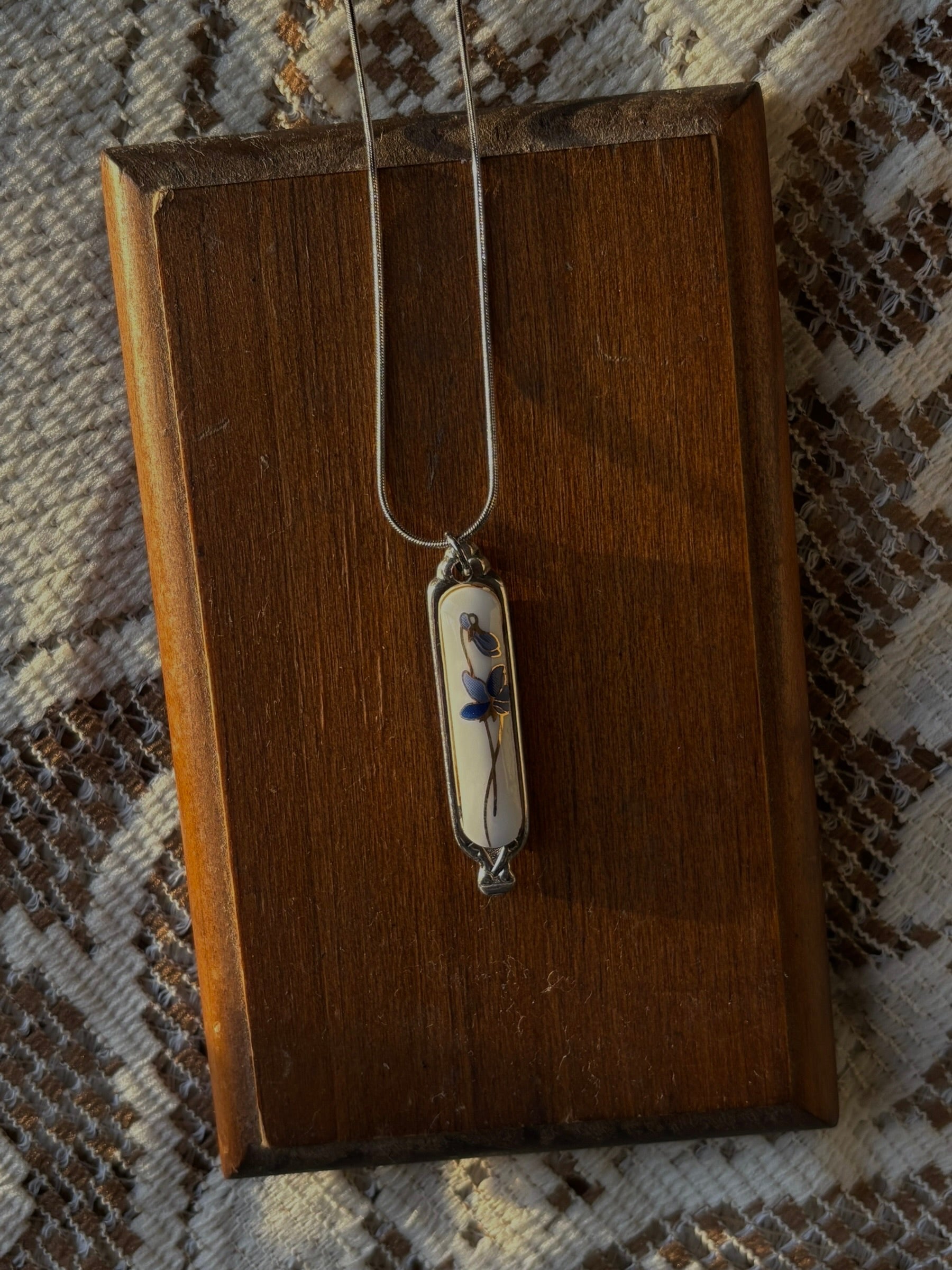 A delicate porcelain collector spoon paired with a 20-inch silver-plated chain. Lightweight, charming, and perfect for anyone who loves unique, nostalgic pieces.