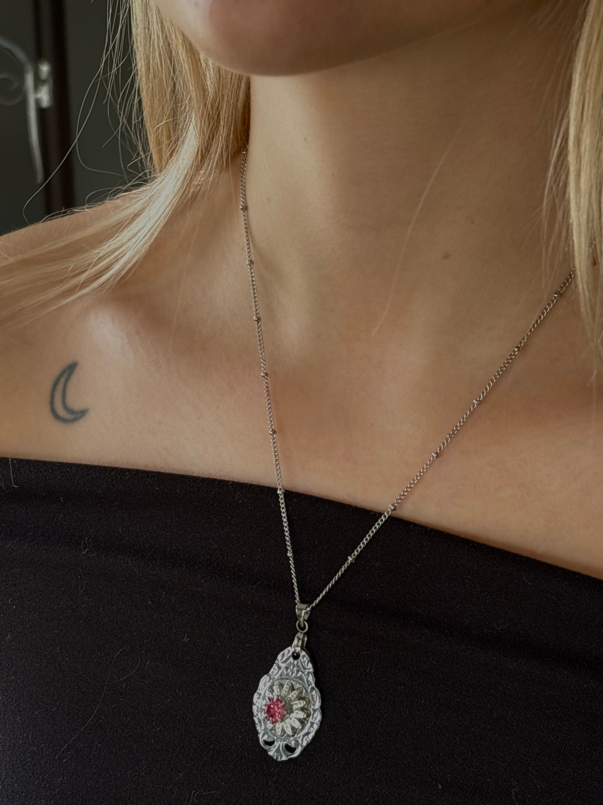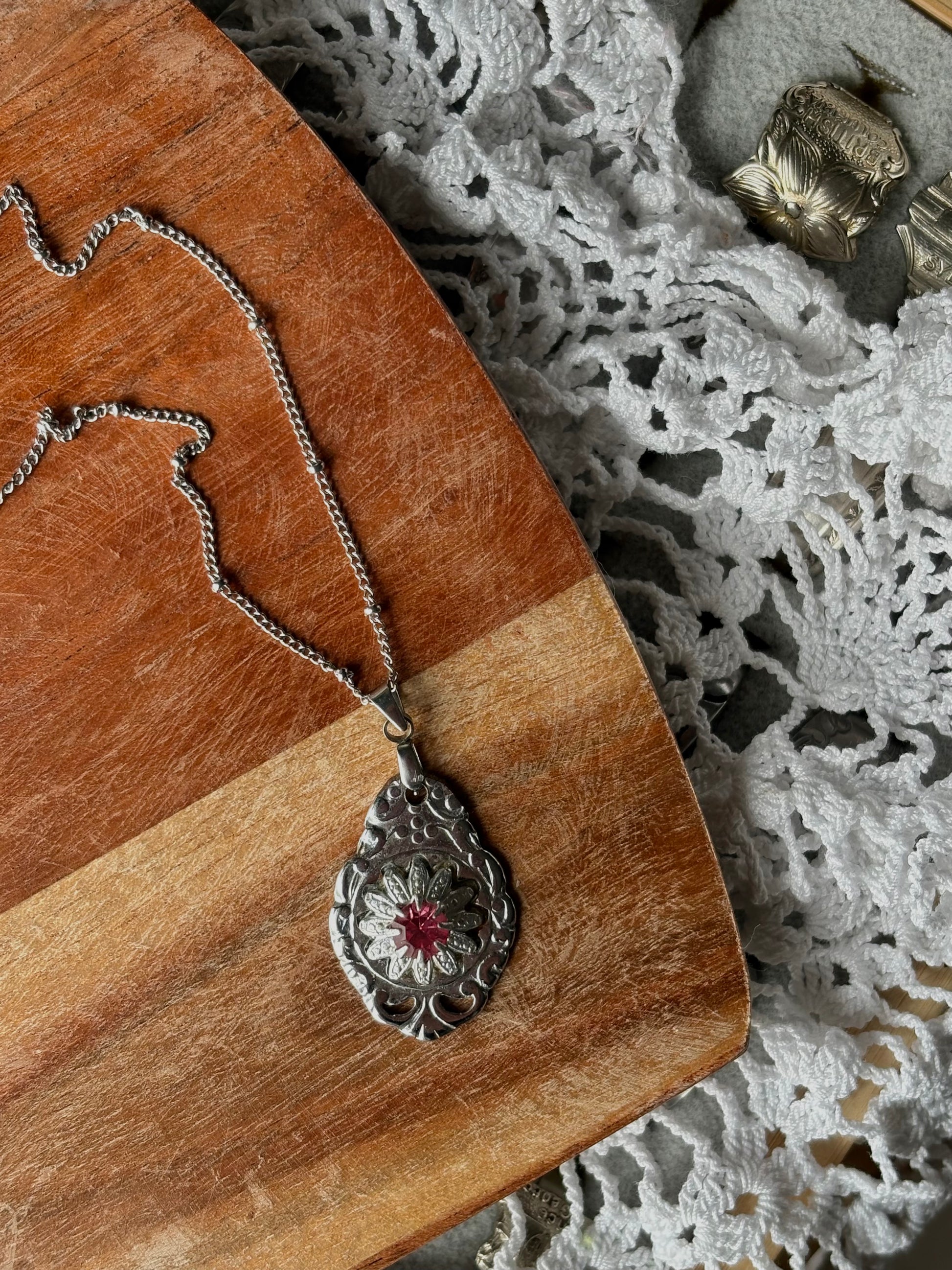 Pink gem Collector spoon pendent, handcrafted from birth month collector spoons
